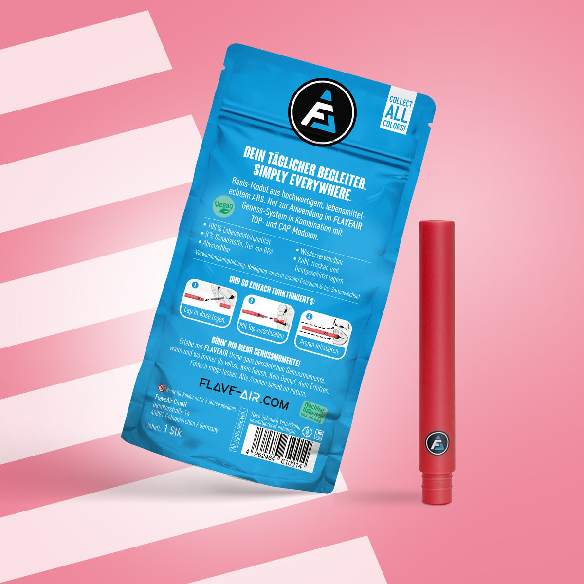The basic module for your FLAVEAIR stick. Experience your very own moments of pleasure with FLAVEAIR, whenever and wherever you want. Nice, fresh and super tasty. All flavors based on nature.