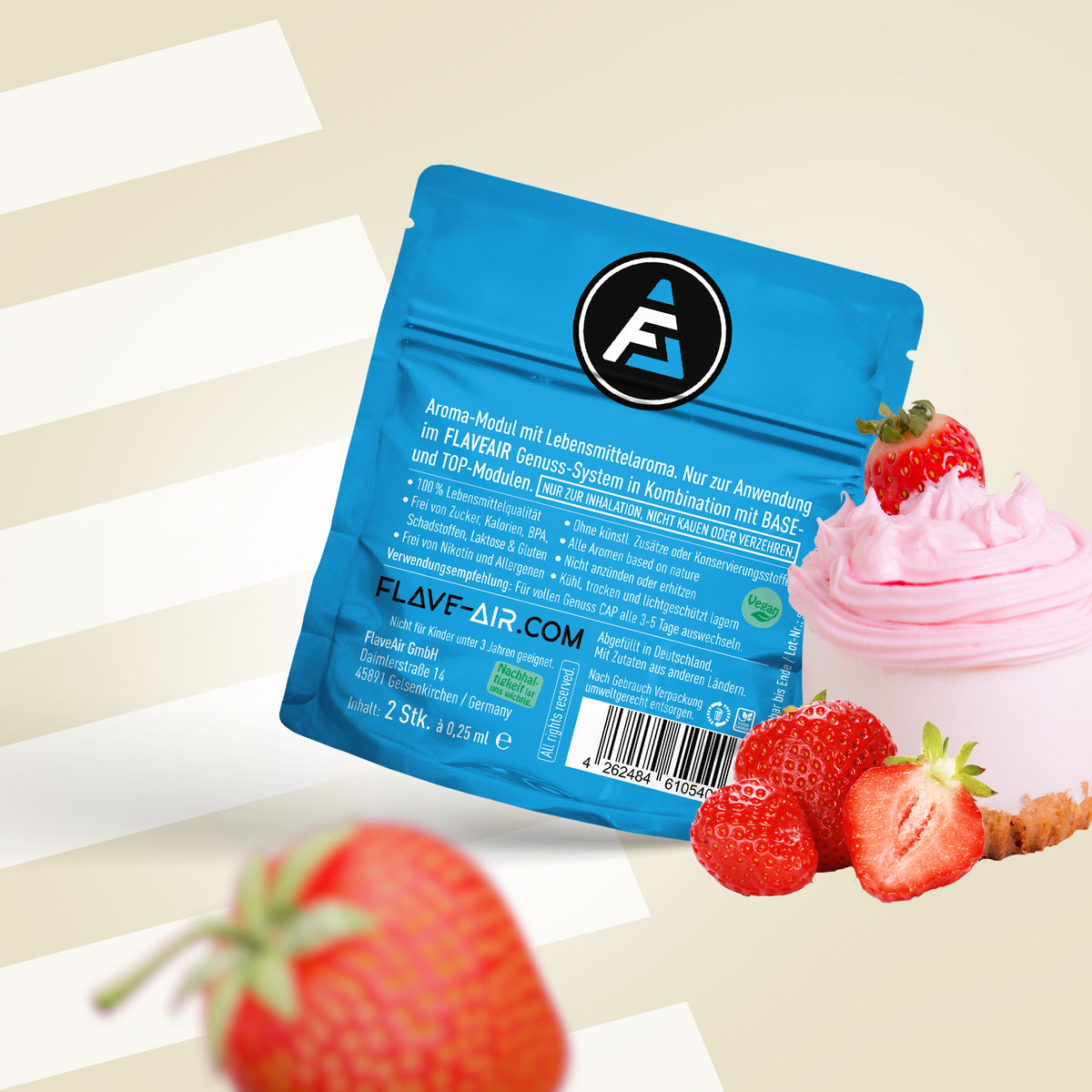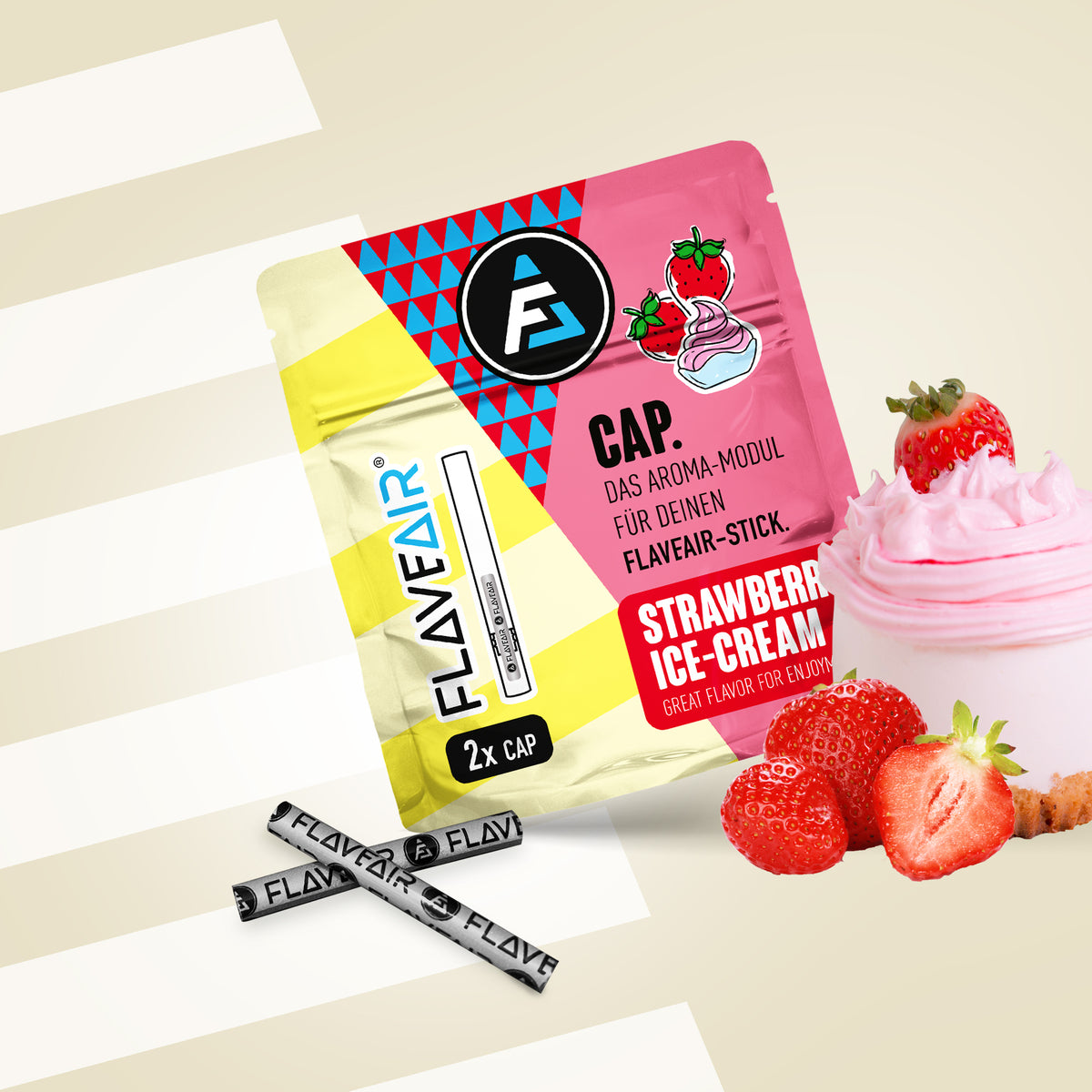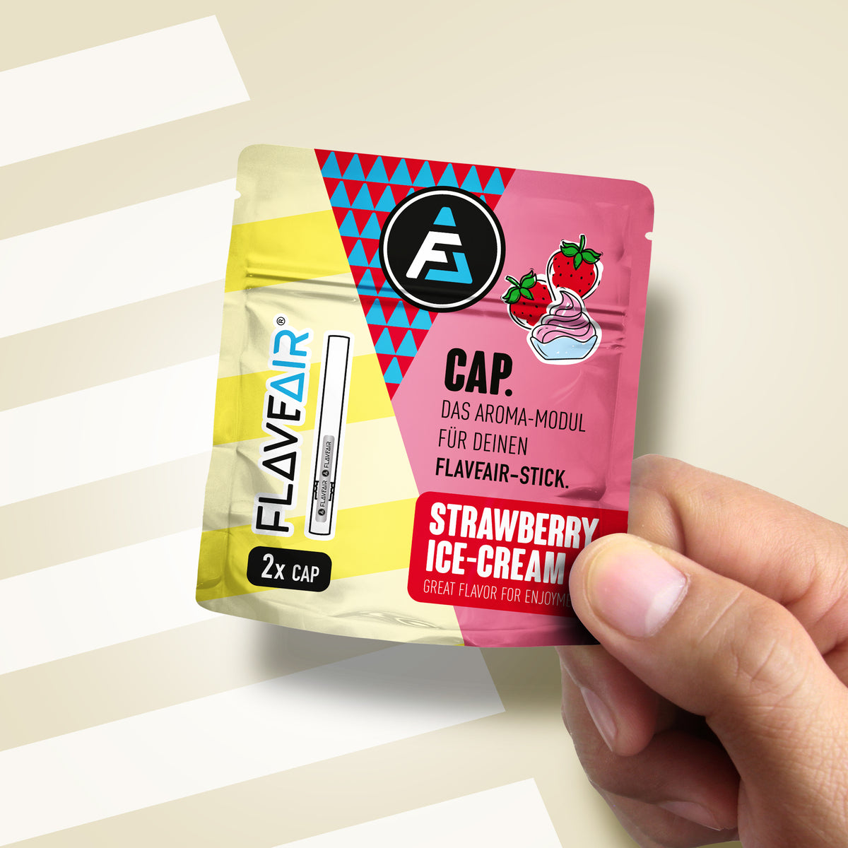 FLAVEAIR is not a cigarette or vape. With your FLAVEAIR enjoyment system you get 100% great taste & 100% great smell, so at least 200% taste smell, which can now support you in stressful everyday situations, among other things.