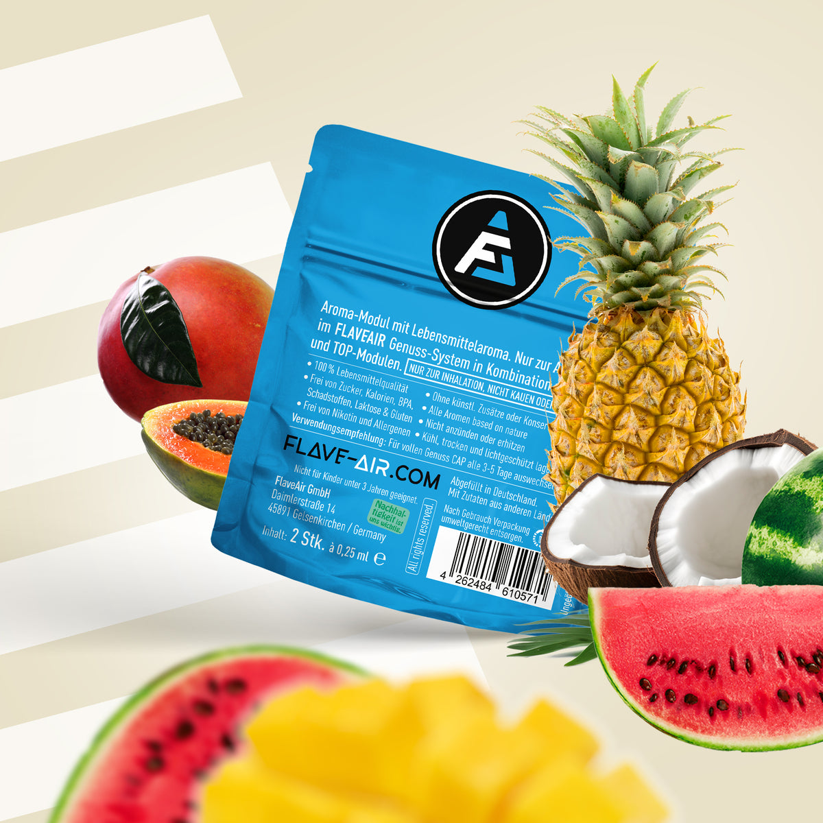 The aroma module for your FLAVEAIR stick. Experience your very own moments of pleasure with FLAVEAIR, whenever and wherever you want. Nice, fresh and super tasty. All flavors based on nature.