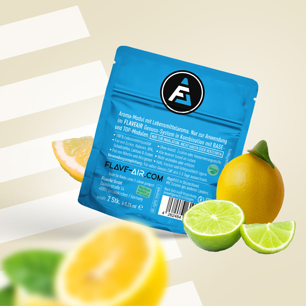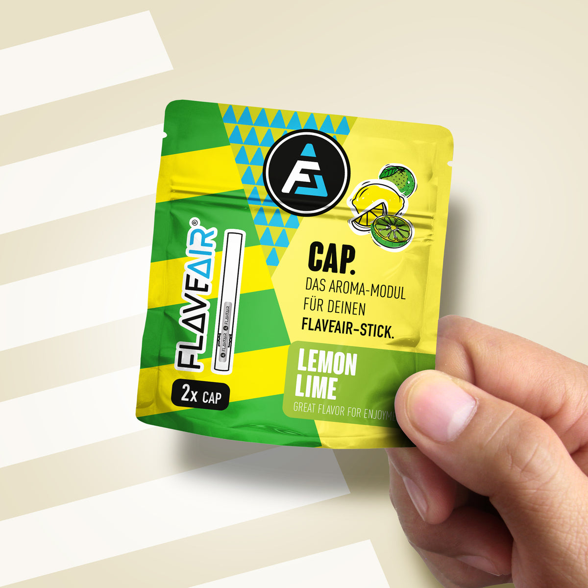 FLAVEAIR is not a cigarette or vape. With your FLAVEAIR enjoyment system you get 100% great taste & 100% great smell, so at least 200% taste smell, which can now support you in stressful everyday situations, among other things.