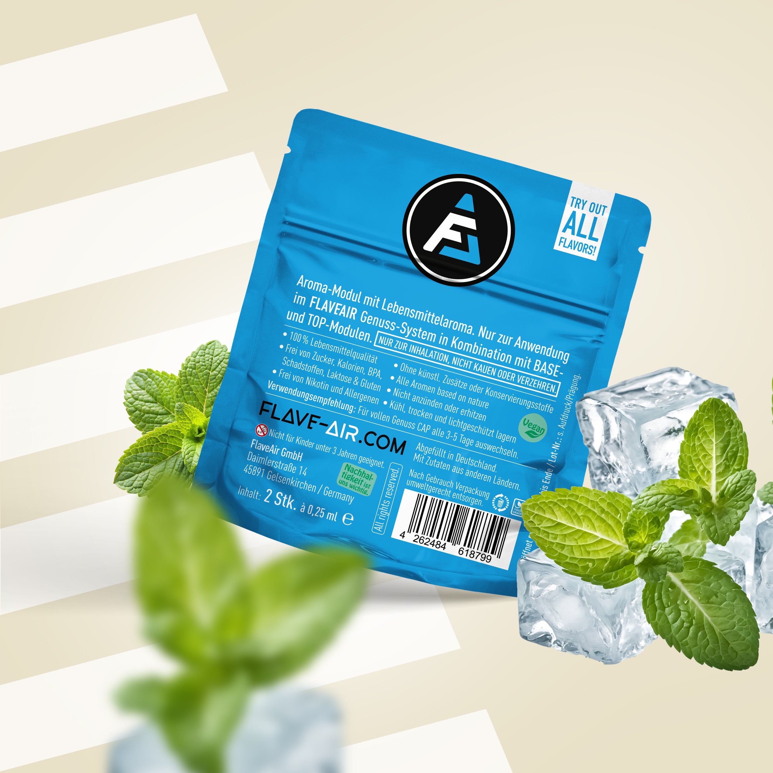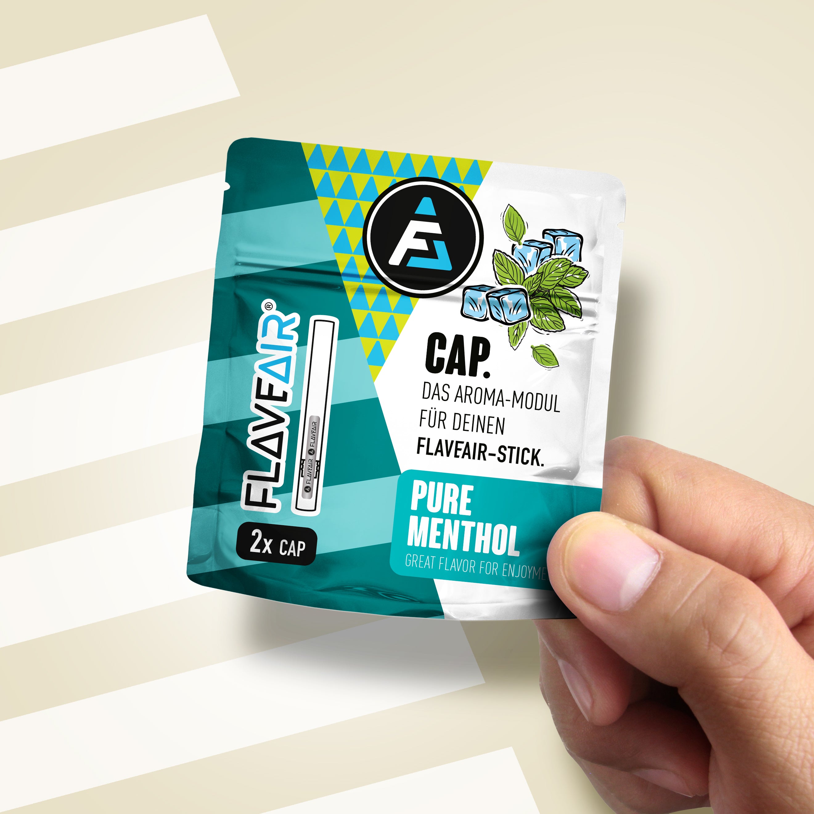 FLAVEAIR is not a cigarette or vape. With your FLAVEAIR enjoyment system you get 100% great taste & 100% great smell, so at least 200% taste smell, which can now support you in stressful everyday situations, among other things.
