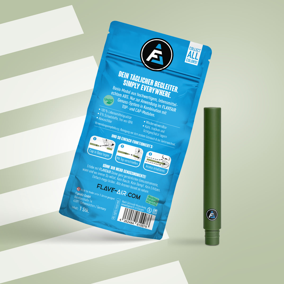 Das Basis-Modul für Deinen FLAVEAIR-Stick. Erlebe mit FLAVEAIR Deine ganz persönlichen Genussmomente, wann und wo immer Du willst. Nice, fresh und mega lecker. Alle Aromen based on nature.