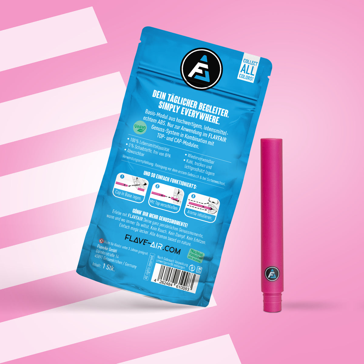 Das Basis-Modul für Deinen FLAVEAIR-Stick. Erlebe mit FLAVEAIR Deine ganz persönlichen Genussmomente, wann und wo immer Du willst. Nice, fresh und mega lecker. Alle Aromen based on nature.
