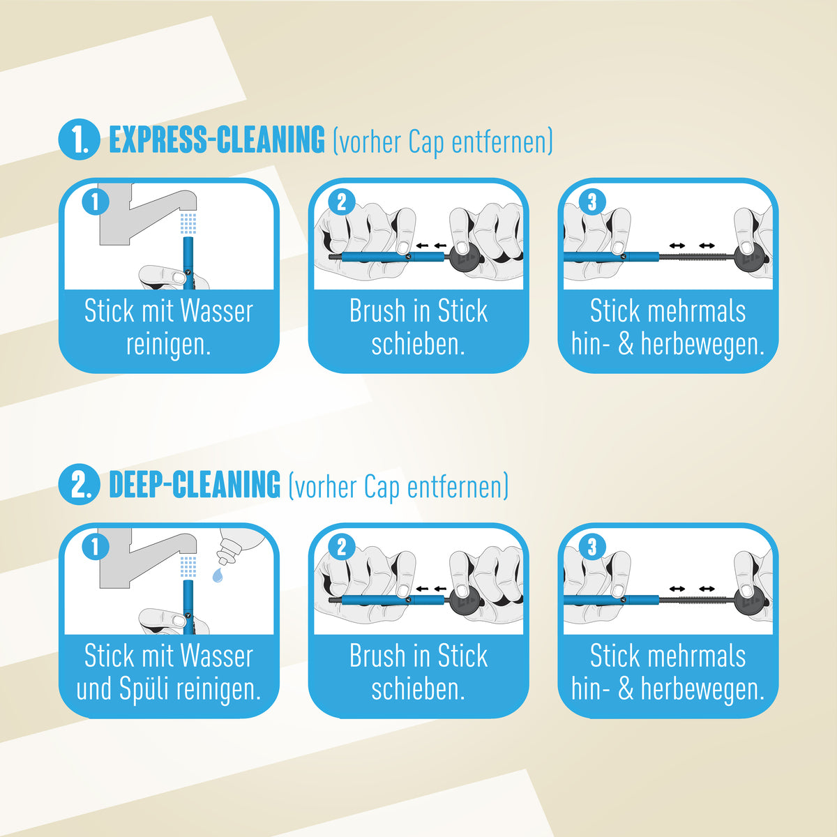 Mit BRUSH kannst Du Deinen FLAVEAIR-Stick ganz leicht reinigen. Reinigung vor dem ersten Gebrauch und bei Sortenwechsel. Für vollen Genuss Aroma-CAP alle 3-5 Tage auswechseln, je nach Gebrauch. Kühl, trocken und lichtgeschützt lagern.