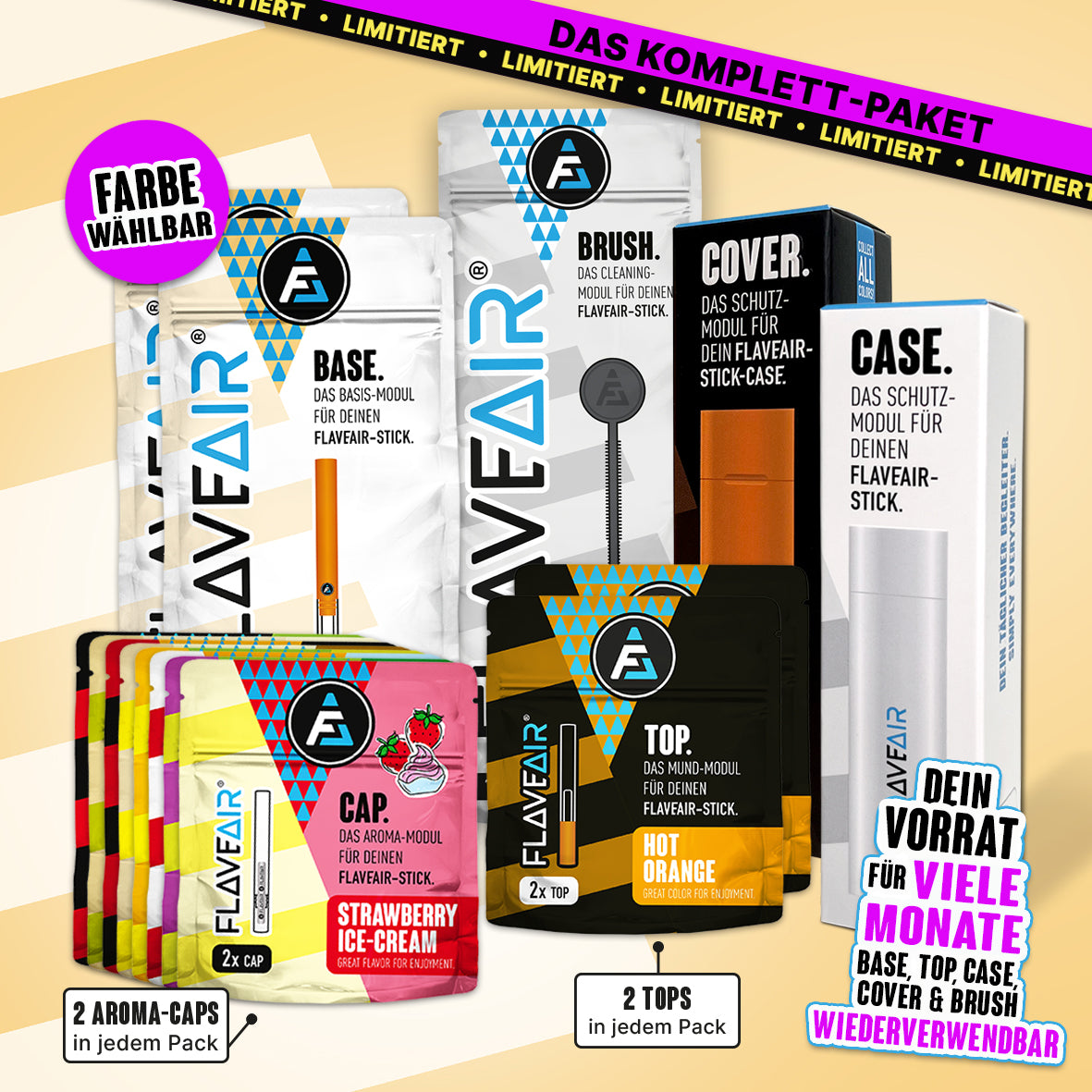 2x BASE, 4x TOP, 16x Aroma-CAP (Farbe wählbar)