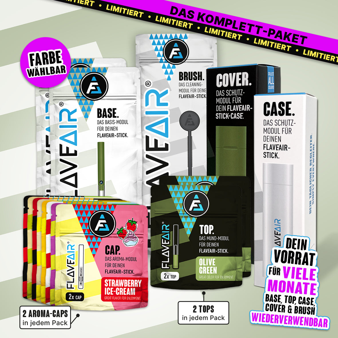 Unser limitiertes LÖWEN-STARTER-SET. ULTIMATE ist Dein absolutes Komplett-Paket. Und EXTREM günstiger als im Einzelkauf. Ideal also für alle, die FLAVEAIR kennenlernen und sich direkt in viele unserer Bestseller-Sorten verlieben wollen.
