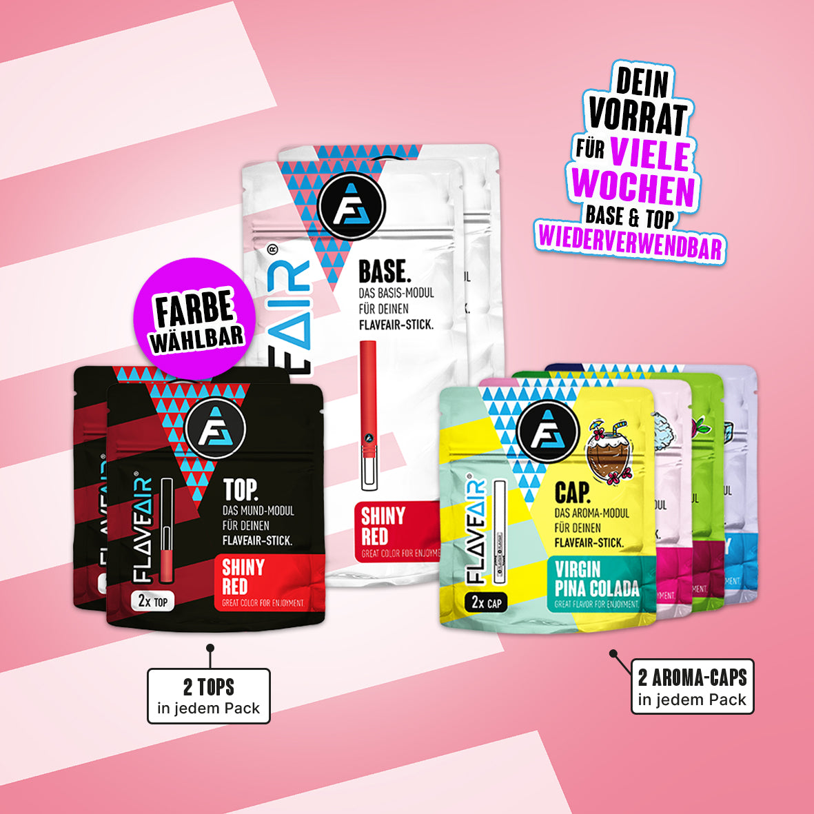 FLAVEAIR Genuss-System nicht anzünden oder erhitzen, nicht kauen oder verzehren. Bei Kontakt von Aroma mit den Augen wird auswaschen empfohlen. Enthält Kleinteile. Nicht geeignet für Kinder unter 3 Jahren. Farbabweichungen zwischen Abbildungen und Original möglich.