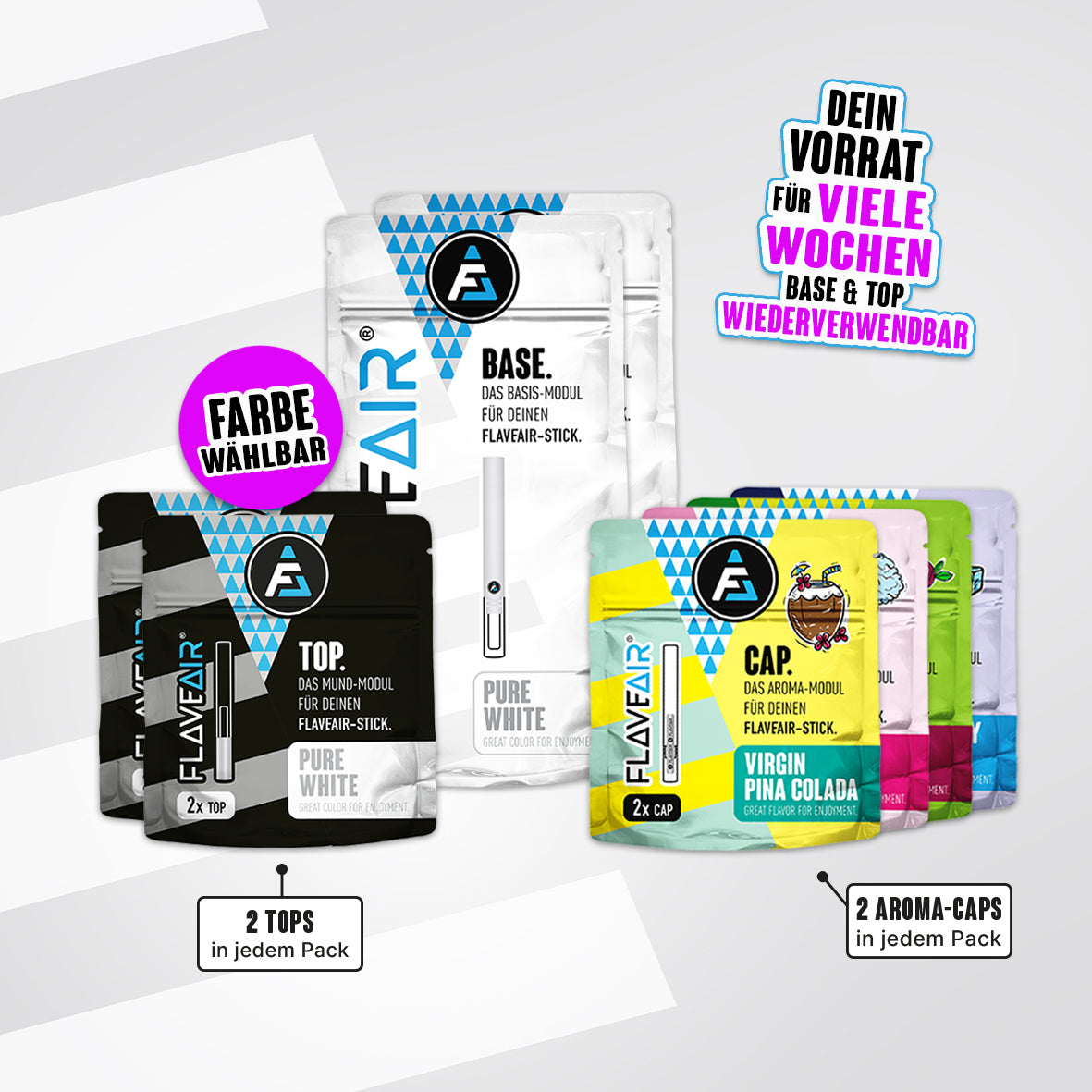 2x BASE, 4x TOP*, 8x Aroma-CAP* (Farbe wählbar)