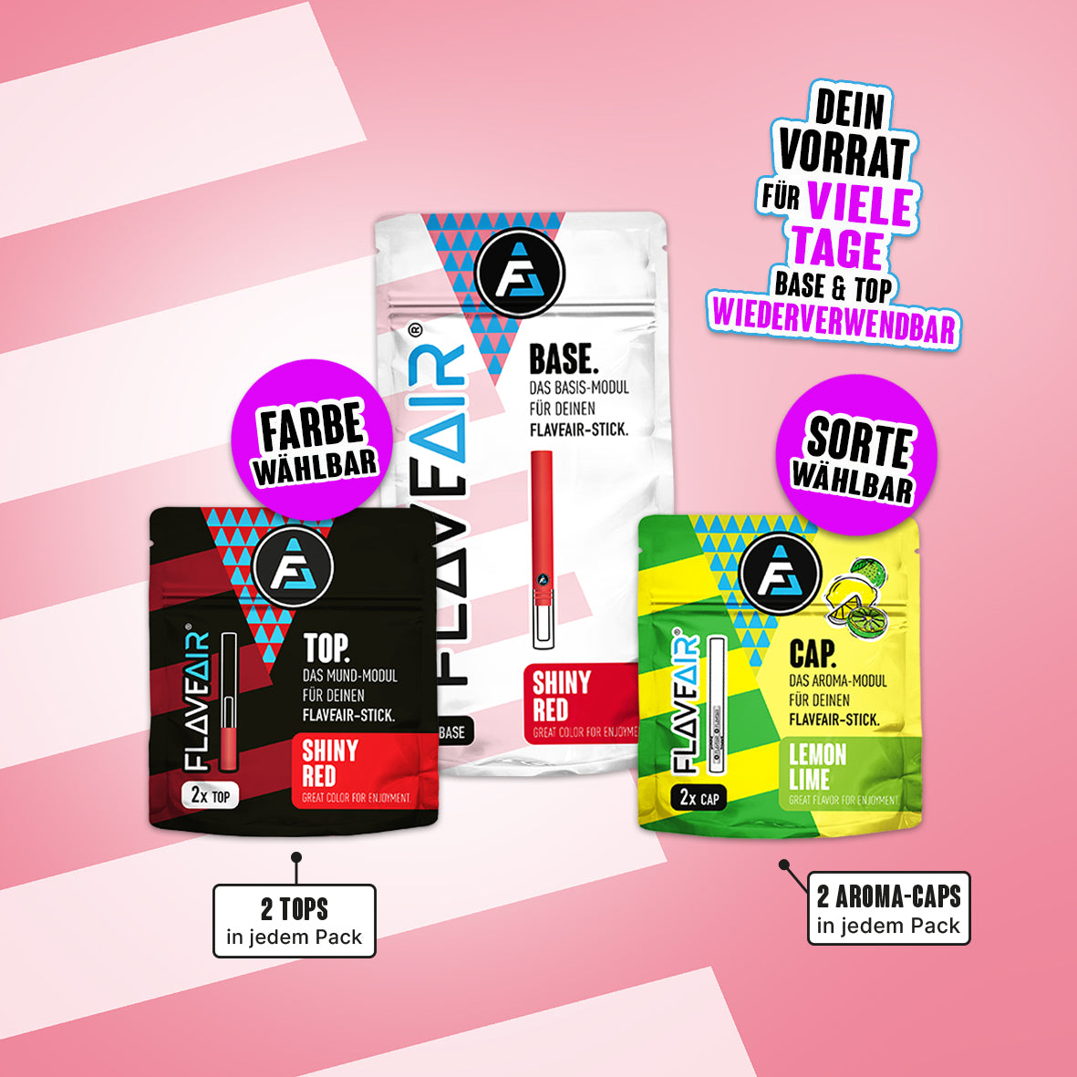 1x BASE, 2x TOP*, 2x Aroma-CAP* (Farbe & Sorte wählbar)