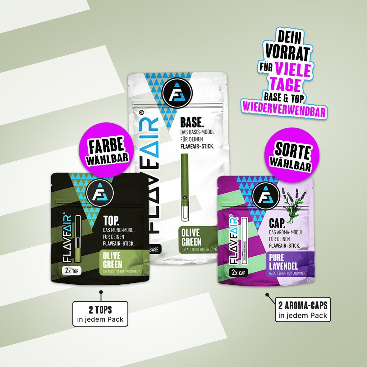 1x BASE, 2x TOP*, 2x Aroma-CAP* (Farbe & Sorte wählbar)
