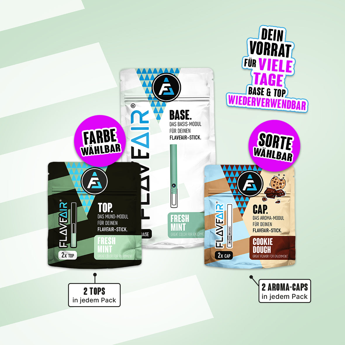 1x BASE, 2x TOP*, 2x Aroma-CAP* (Farbe & Sorte wählbar)