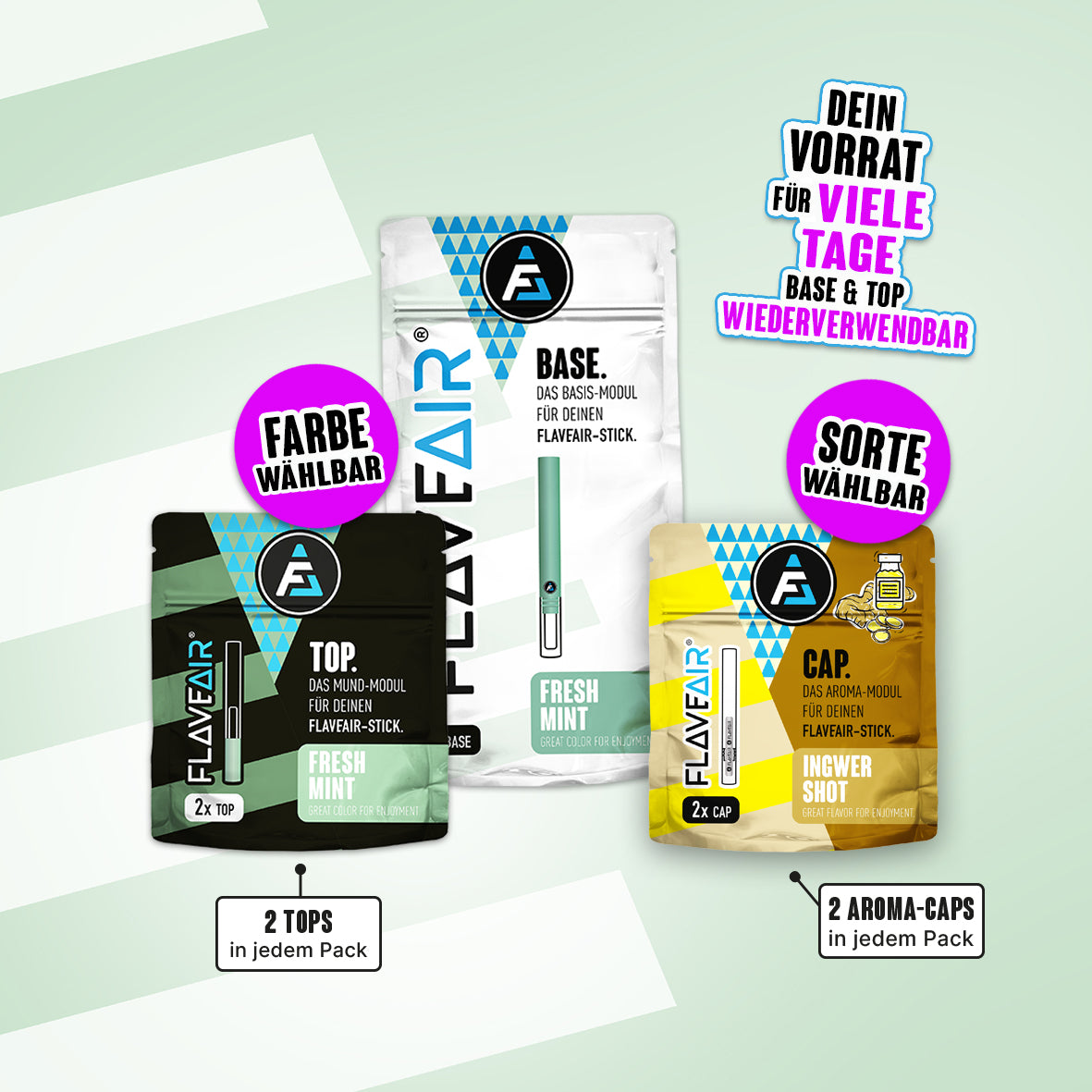 1x BASE, 2x TOP*, 2x Aroma-CAP* (Farbe & Sorte wählbar)
