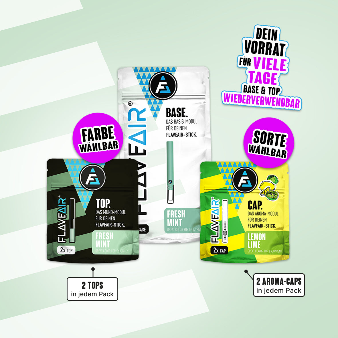 1x BASE, 2x TOP*, 2x Aroma-CAP* (Farbe & Sorte wählbar)