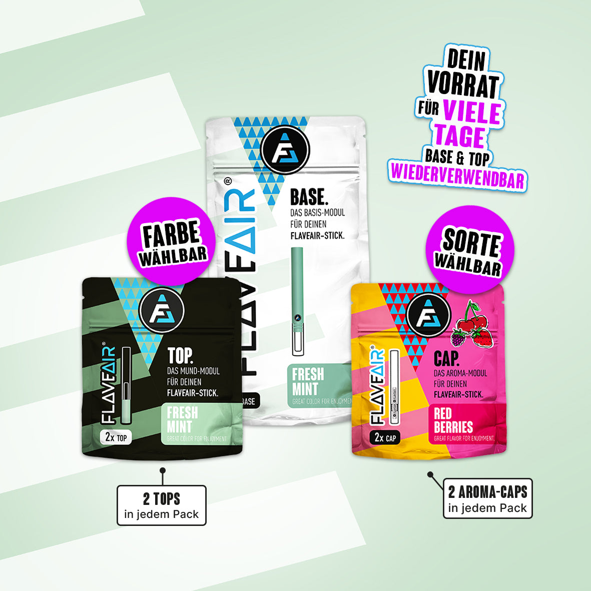 1x BASE, 2x TOP*, 2x Aroma-CAP* (Farbe & Sorte wählbar)