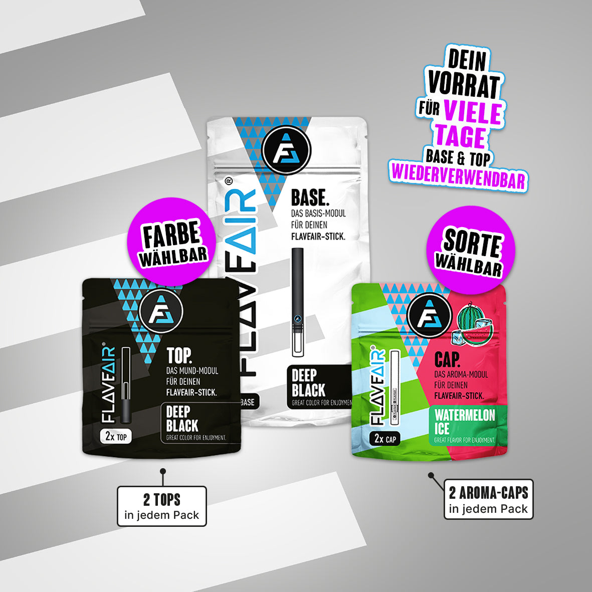 1x BASE, 2x TOP*, 2x Aroma-CAP* (Farbe & Sorte wählbar)