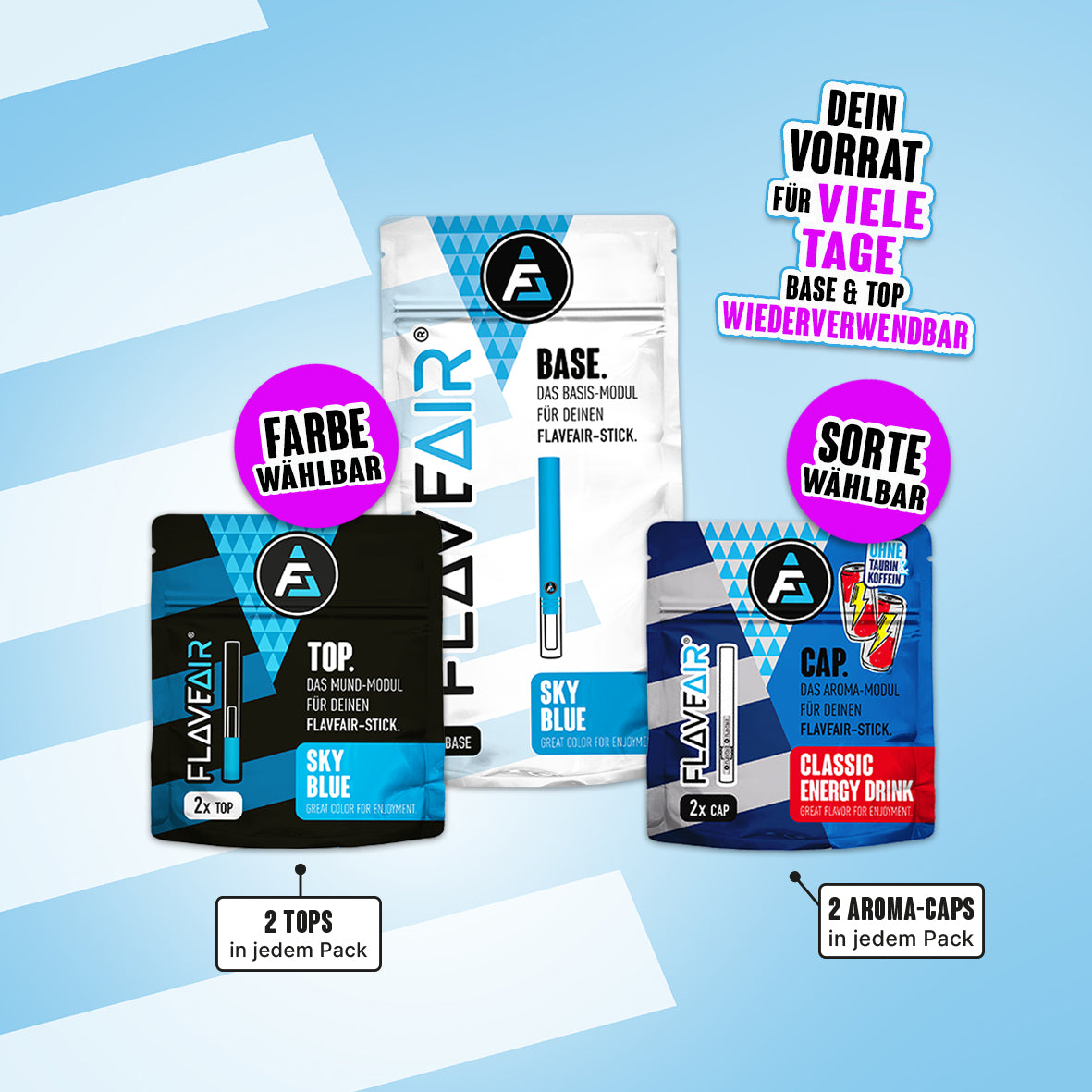 1x BASE, 2x TOP*, 2x Aroma-CAP* (Farbe & Sorte wählbar)