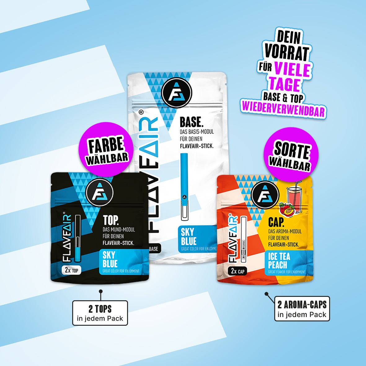 1x BASE, 2x TOP*, 2x Aroma-CAP* (Farbe & Sorte wählbar)