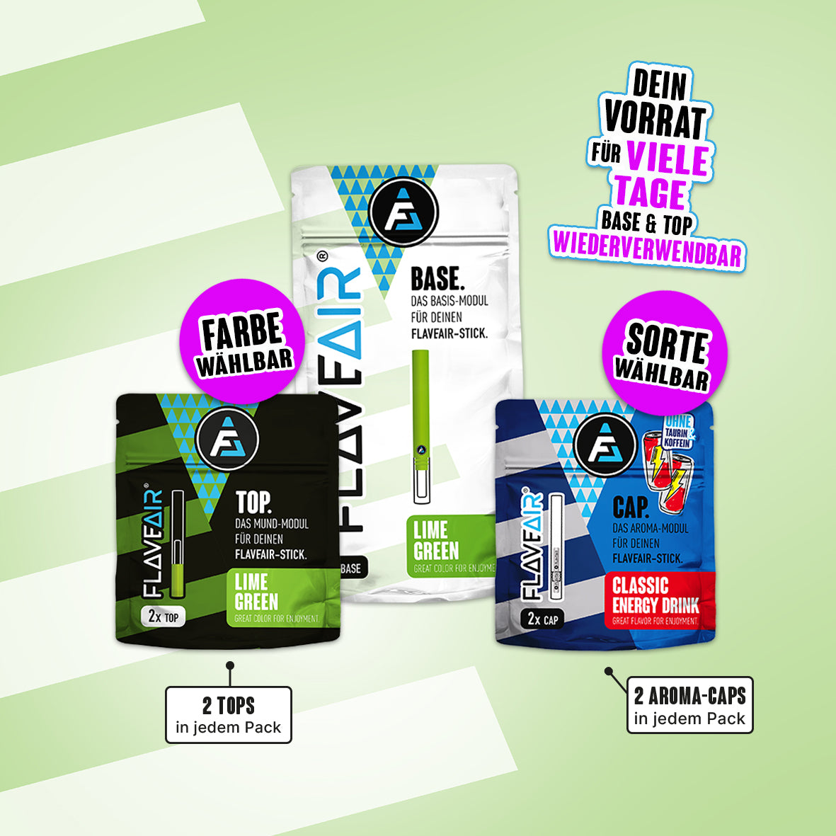 1x BASE, 2x TOP*, 2x Aroma-CAP* (Farbe & Sorte wählbar)