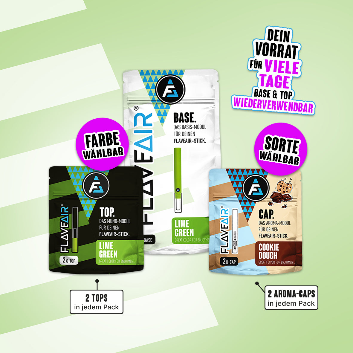 1x BASE, 2x TOP*, 2x Aroma-CAP* (Farbe & Sorte wählbar)