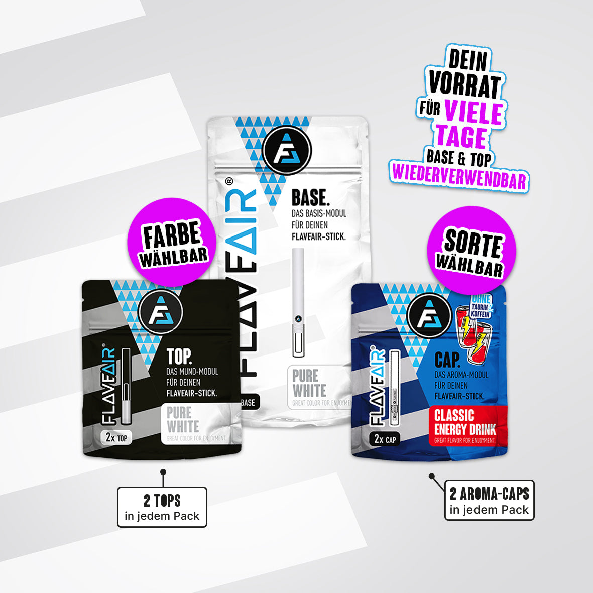 1x BASE, 2x TOP*, 2x Aroma-CAP* (Farbe & Sorte wählbar)