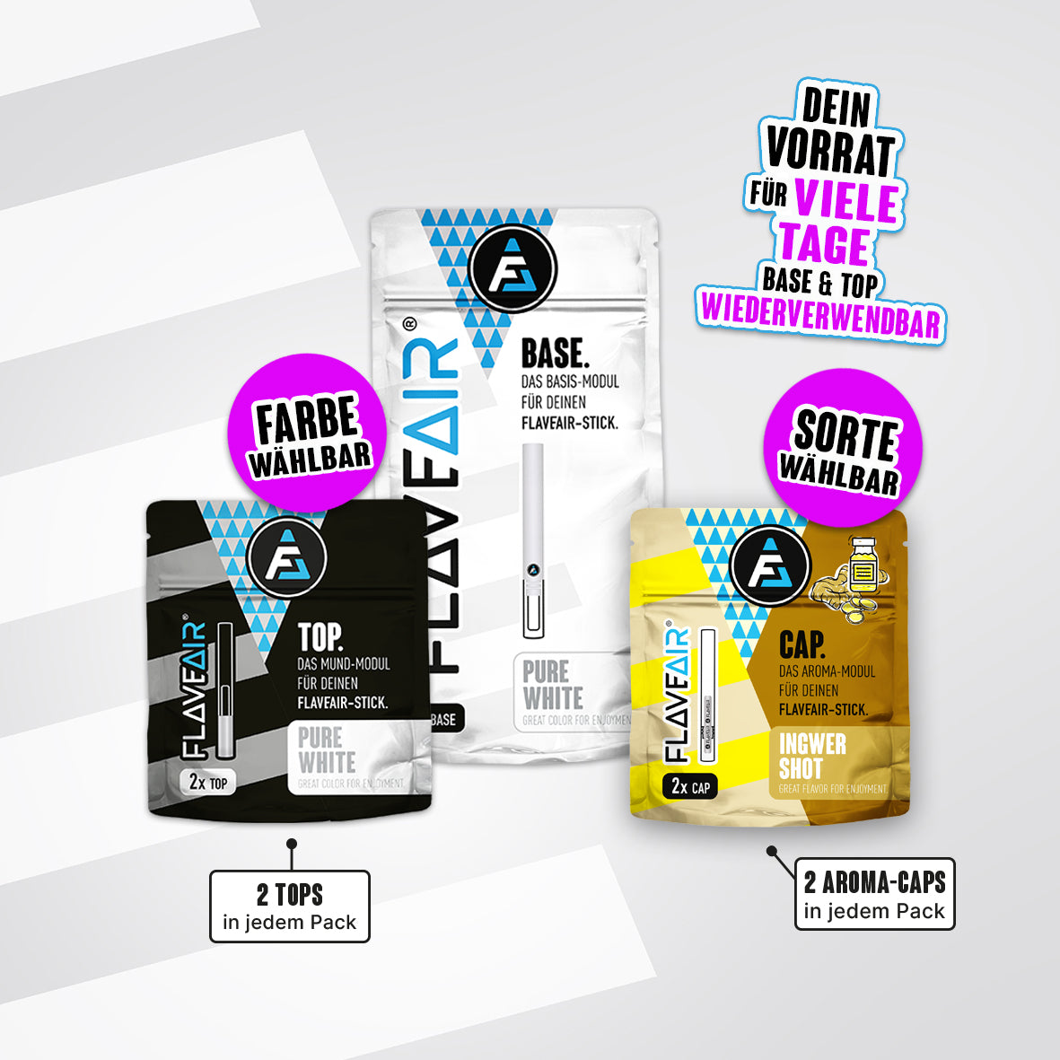 1x BASE, 2x TOP*, 2x Aroma-CAP* (Farbe & Sorte wählbar)