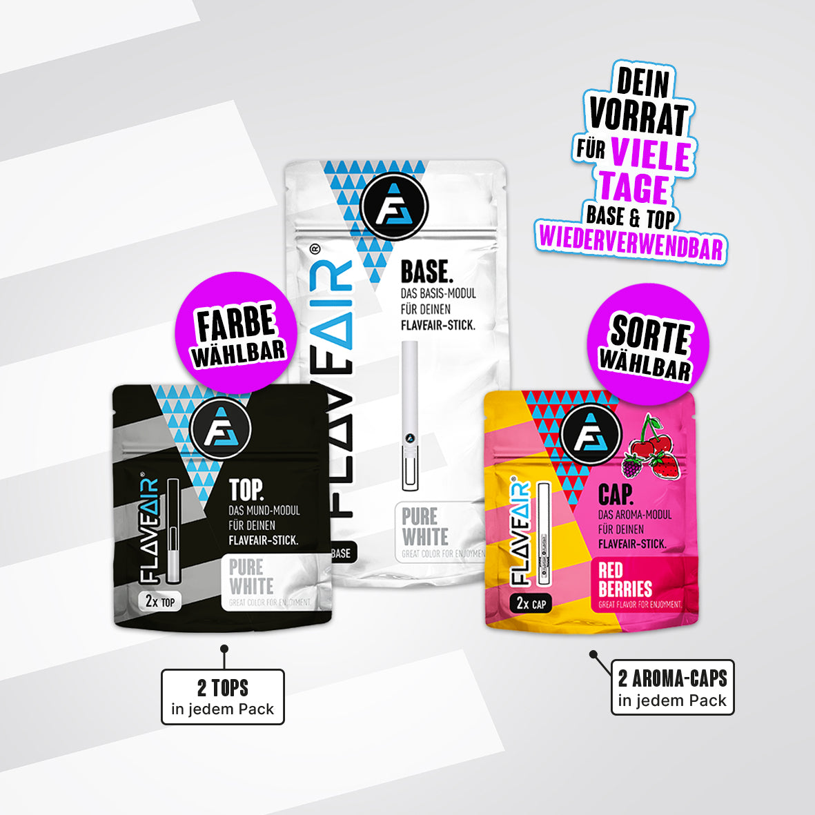 1x BASE, 2x TOP*, 2x Aroma-CAP* (Farbe & Sorte wählbar)