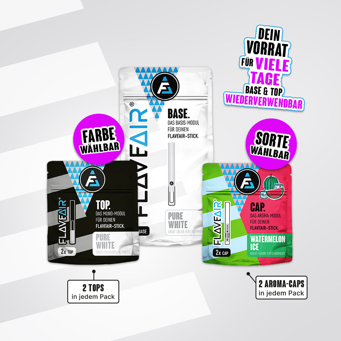 1x BASE, 2x TOP*, 2x Aroma-CAP* (Farbe & Sorte wählbar)