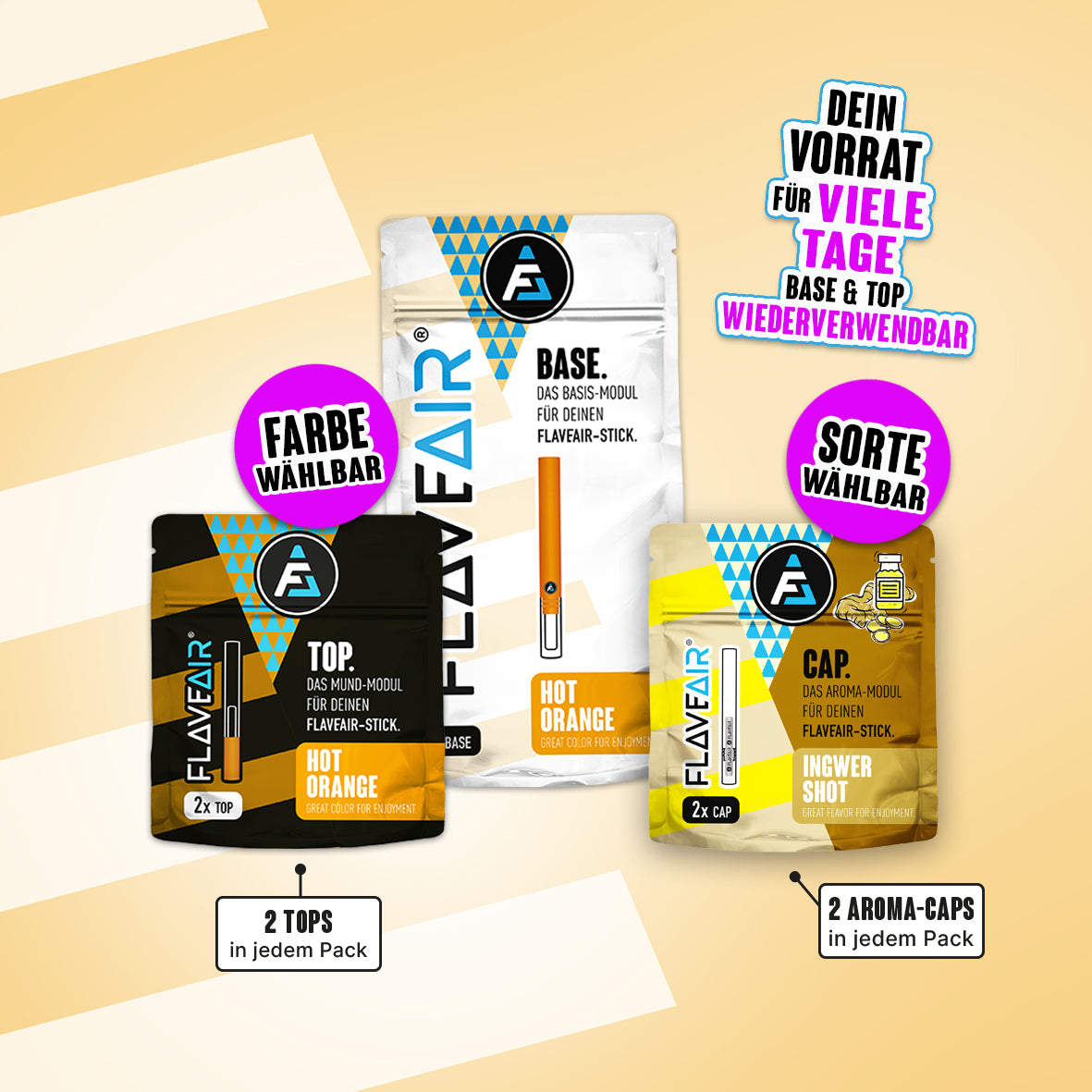 1x BASE, 2x TOP*, 2x Aroma-CAP* (Farbe & Sorte wählbar)