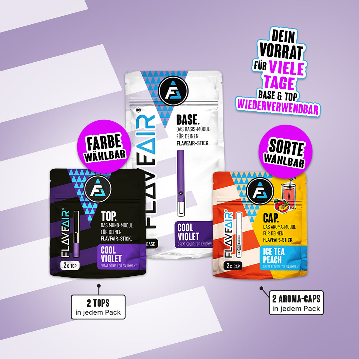 1x BASE, 2x TOP*, 2x Aroma-CAP* (Farbe & Sorte wählbar)