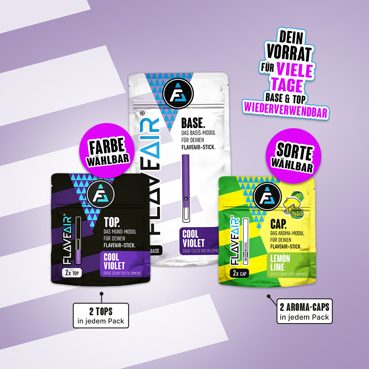 1x BASE, 2x TOP*, 2x Aroma-CAP* (Farbe & Sorte wählbar)
