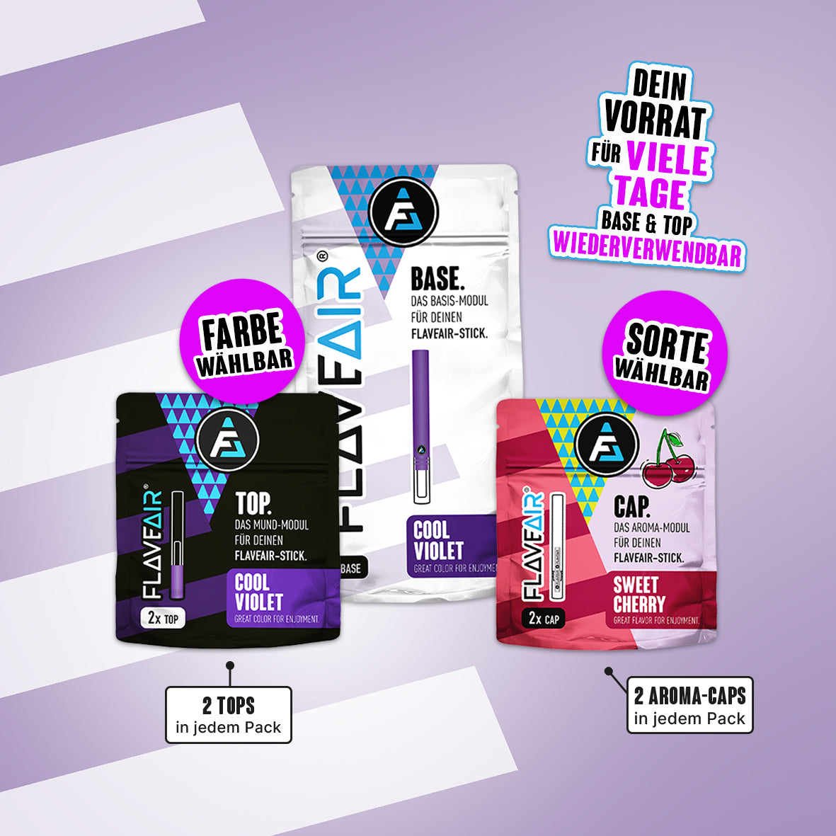 1x BASE, 2x TOP*, 2x Aroma-CAP* (Farbe & Sorte wählbar)
